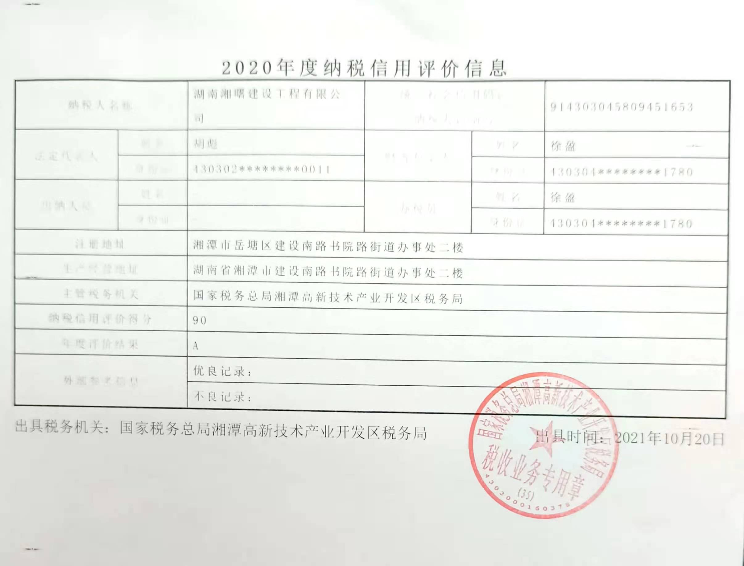 企業(yè)納稅信用等級報告: