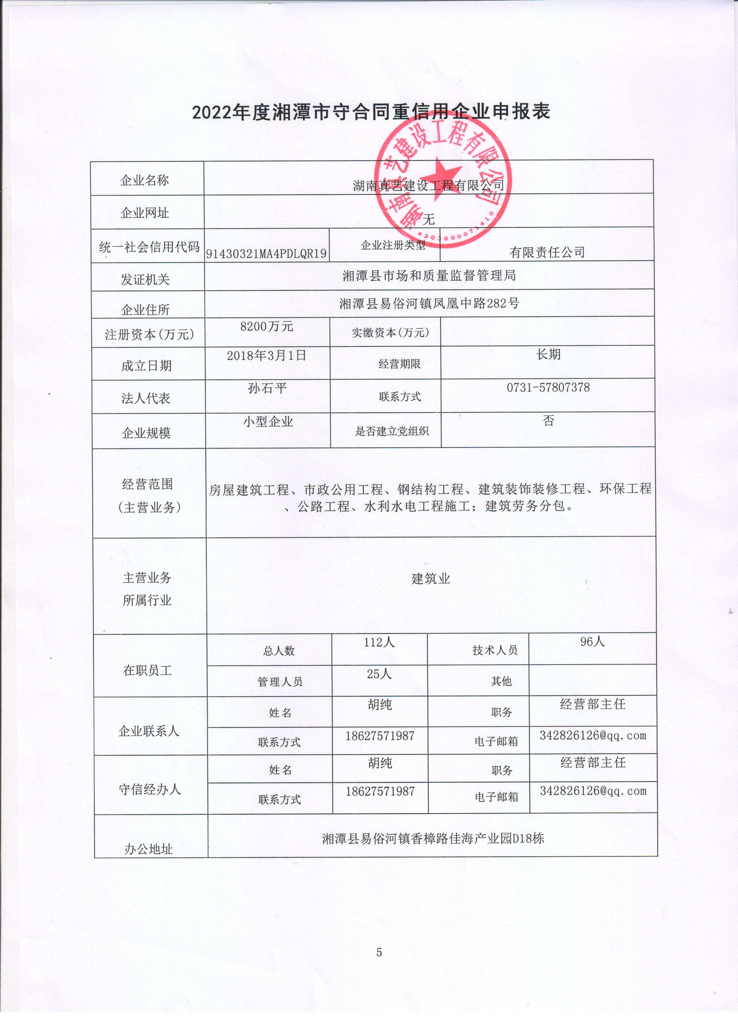 本企業(yè)根據(jù)《湘潭市守合同重信用企業(yè)申報規(guī)定》等編制 2022 年度企業(yè)信用報告書,并保證本報告書內(nèi)容真實、準(zhǔn)確、完整。