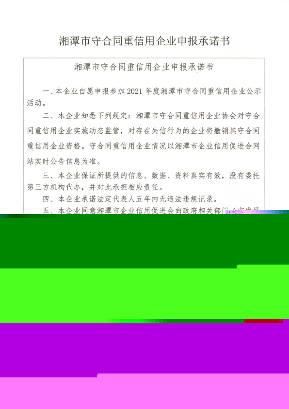 本企業(yè)根據(jù)《湘潭市守合同重信用企業(yè)申報(bào)規(guī)定》等編制 2021 年度企業(yè)信用報(bào)告書(shū),并保證本報(bào)告書(shū)內(nèi)容真實(shí)、準(zhǔn)確、完整。